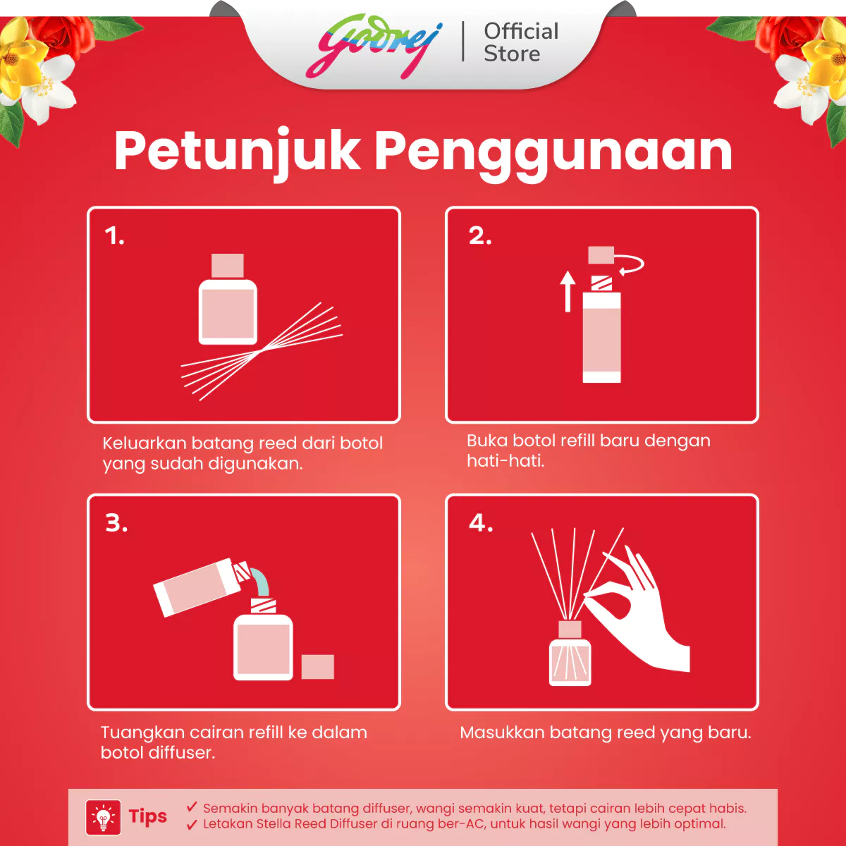 Biar wanginya maksimal, cara isi ulang stella reed diffuser rosewood harmony itu simpel banget lho. Pertama, bersihkan dulu botol kaca lamamu. Tuangkan cairan refill 30ml ini ke dalamnya. Terus, jangan lupa pakai stik rotan yang baru supaya daya serapnya maksimal dan wanginya menyebar rata ke seluruh ruangan.